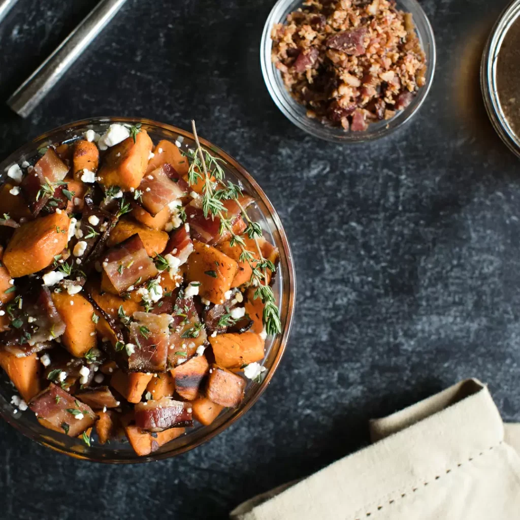 Sweet potatoes are tasty all on their own, but in this instance, they’re the vessel that brings the bacon to our mouth. We topped off this recipe from EatingWell with pure maple syrup and our sugar-free bacon that’s been smoked low & slow. This year, we’re leaving the marshmallows behind and smothering our sweet potatoes in what we believe is something far superior. Bacon.