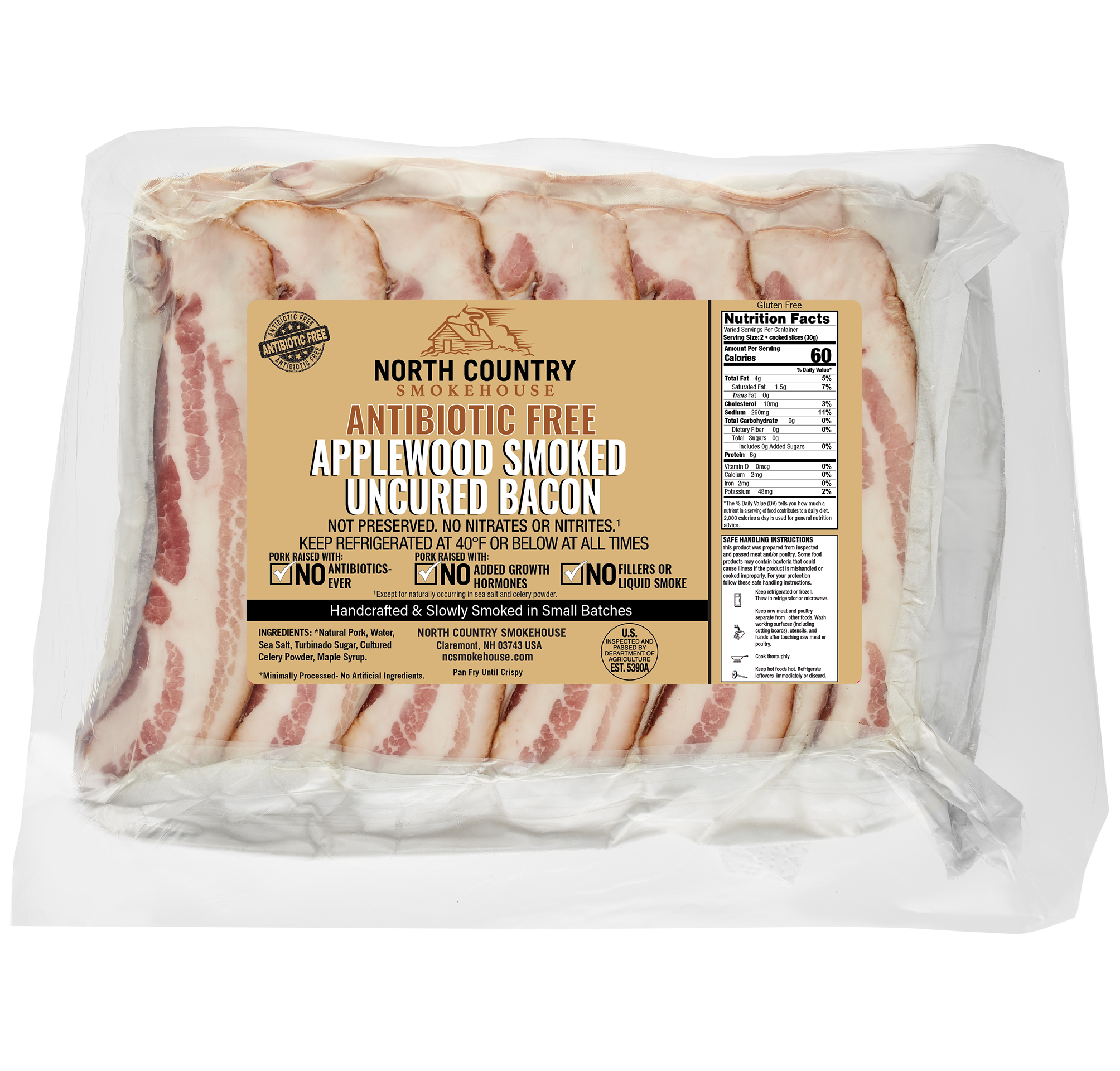 Natural Pork, Water, Sea Salt, Turbinado Sugar, Cultured Celery Powder (Cultured Celery Powder, Sea Salt), Maple Syrup. No Articificial Ingredients. Minimally Processed.