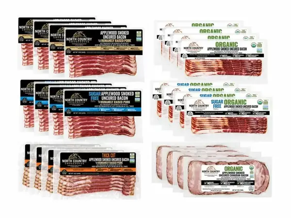 - 4, 12 oz. Uncured Sugar-Free Applewood Smoked Bacon