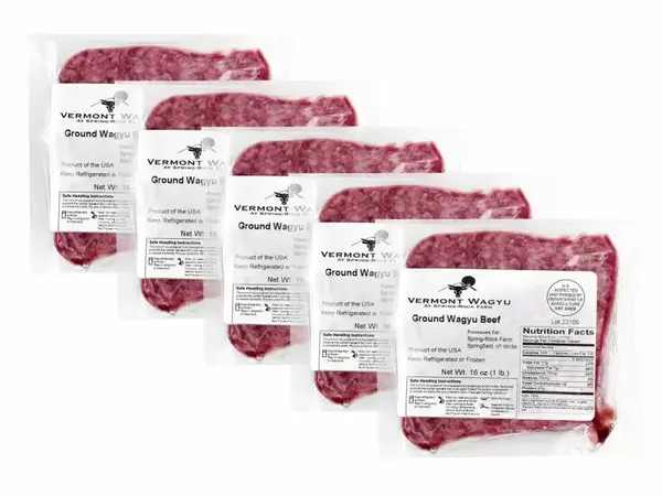 - 5, 1lb. packs of Ground Wagyu Beef – vacuum sealed